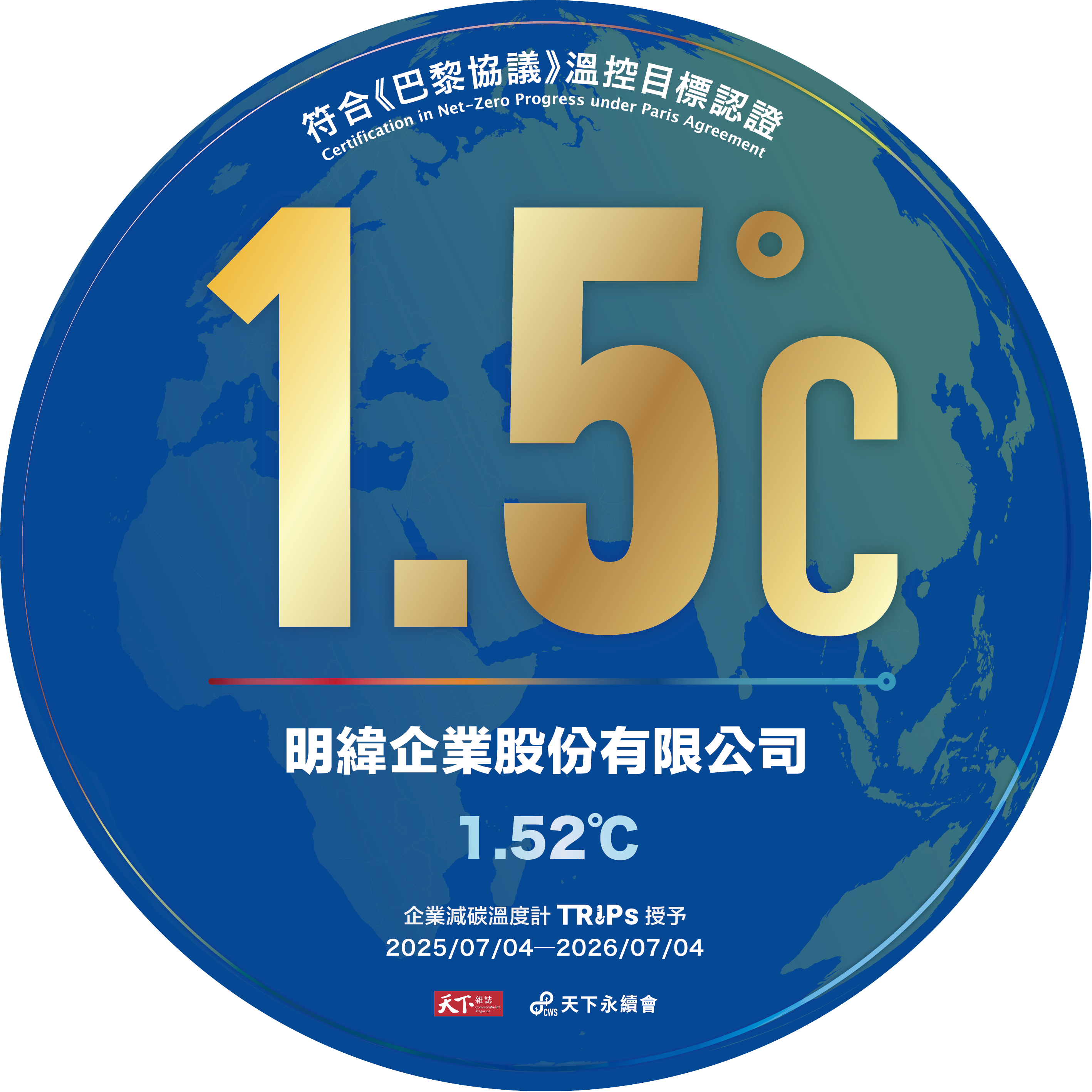 - 天下企業減碳溫度計–溫控1.52°C成效卓越標章