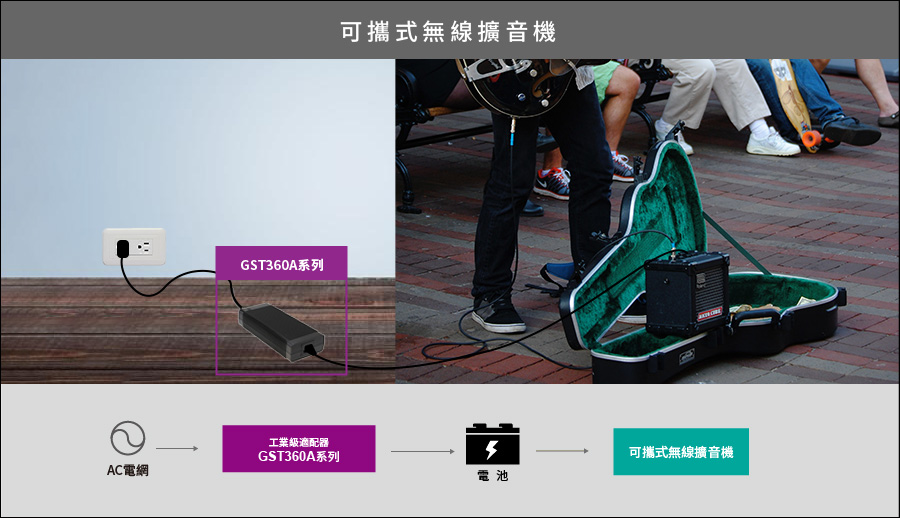 GST360A系列有別於市售消費性等級適配器,採工業級耐用、適用全球各國、環保節能概念設計,本系列額定功率360W,可供載450W (3秒)、可使用在-30~+70℃各種環境溫度、嚴選用料提供3年保固、擁有多國環球認證、並通過Level VI國際能效標準,因此不論在空載待機時或使用中,皆能有效地達到節能減碳之目的。 該系列適用於商辦設備、工業儀器或需要符合能耗標準之各類系統,如: 3D列印機、POS系統、遊戲機、可攜式擴音機、移動式舞台燈、PoE …等。