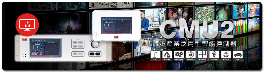 明緯新推出的CMU2為系統電源的控制器,而系統電源之組成,是由數台電源組合而稱之。明緯產品組合而成的系統電源可應用在大耗電量的應用環境,例如: 工業應用、水處理、EV充電、電子產品老化作業系統、UV 固化設備、園藝照明、雷射...等。當客戶有此類大功率需求時,通常會將電源集中配置以利管理。此時,就是CMU2出場的最佳時刻。為了實現控制數位化與智能化,明緯推出第三代多產業泛用型智能控制器CMU2內建豐富的軟體與韌體,可搭配電源產品DRP-3200系列,實現電源管理進而應用於工業應用、水處理…等(Link),或搭配能源回饋式燒機產品ERG-5000/ERS-1400來實現低能耗老化作業(Link)。