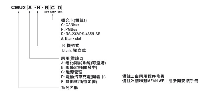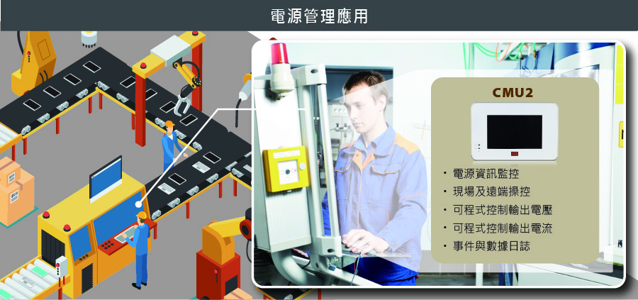 此外,為了方便使用者安裝於各場合,CMU2有兩種型態可選購,分別為獨立型與機櫃型。針對不同應用有內建不同韌體與軟體,例如用於電源管理時所需的電壓電流調整,功率監控、日誌,或是使用在燒機設備時所需的燒機時間,負載設定…等,讓使用者可快速地透過明緯最新設計的人機介面,進行系統的監視與控制。而為協助終端用戶達成智能工廠與工業自動化,CMU2除了配有觸控面板之外,更個別支援PMBus、CANBus或Modbus TCP通訊協定,讓管理者可透過有線或無線連網方式,達成近、遠程操作。