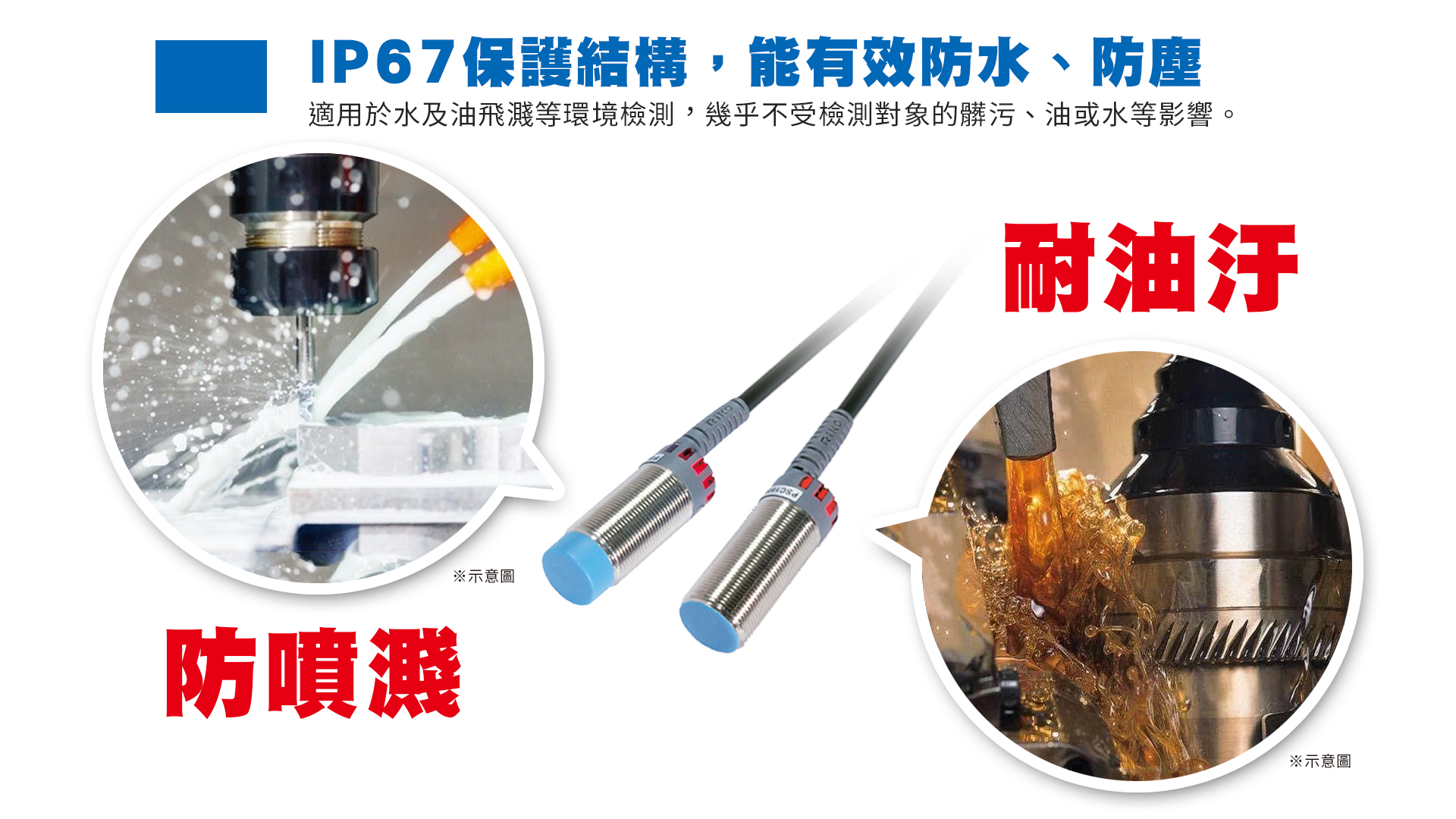 - 不受檢測環境髒污、油、水等影響。