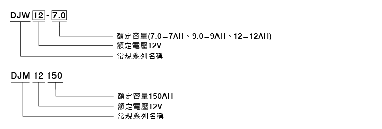 DJW / DJM系列:12V/7~12AH & 150AH 閥控式密封免保養鉛酸電池